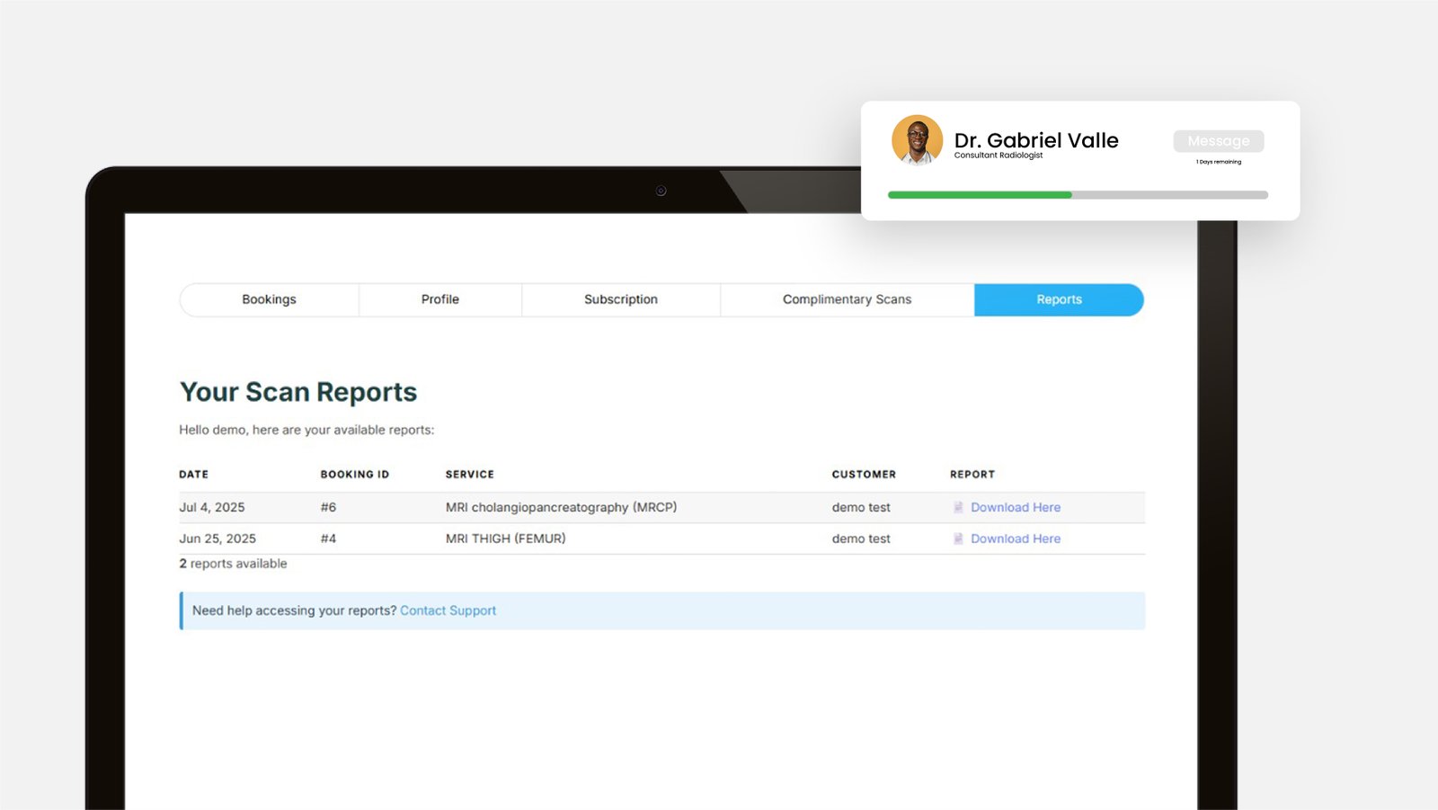 Need a second opinion, referral, subscription plan or annual health check? Manage everything in our MyScanHub members portal.