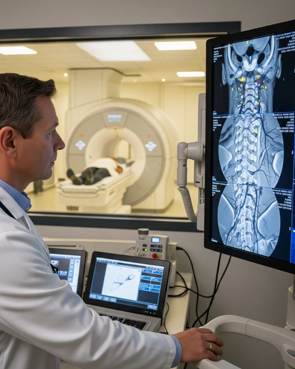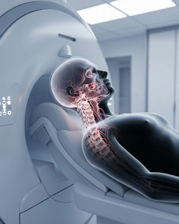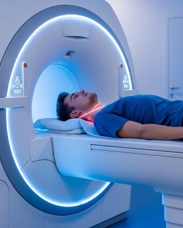 MRI offers superior contrast resolution, making it ideal for soft tissue, glandular, and vascular structures of the neck — especially when evaluating lumps, persistent pain, or neurological symptoms.