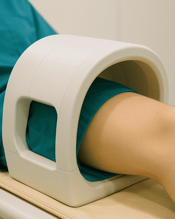 An MRI scan of the thigh provides in-depth imaging of the femur (thigh bone), quadriceps, hamstrings, adductors, nerves, vessels, and surrounding soft tissues. Whether symptoms occur in the left, right, or both thighs, this scan helps diagnose injuries, swelling, or structural abnormalities.