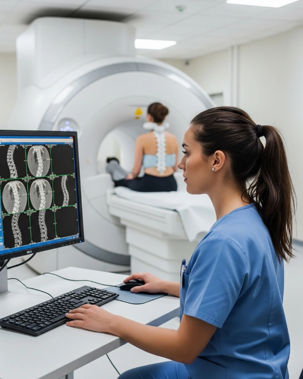 The thoracic spine is made up of 12 vertebrae (T1–T12) located between the cervical (neck) and lumbar (lower back) spine. MRI uses powerful magnets and radiofrequency waves to create high-resolution, cross-sectional images — without radiation.