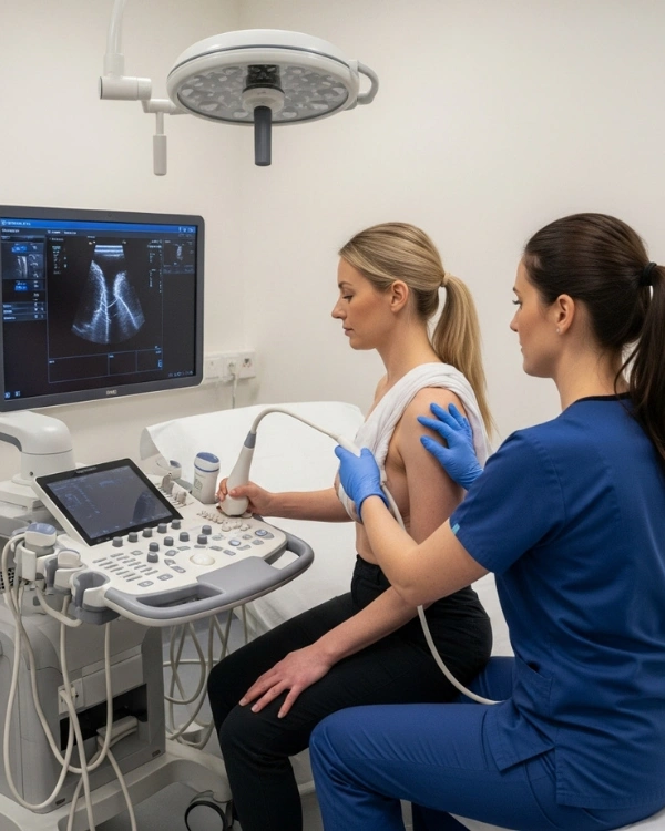 A breast ultrasound scan is a quick, safe, and highly effective imaging test used to evaluate breast lumps, pain, asymmetry, or other changes. It is commonly used as a first-line scan for younger women, or as a complementary assessment to mammography.