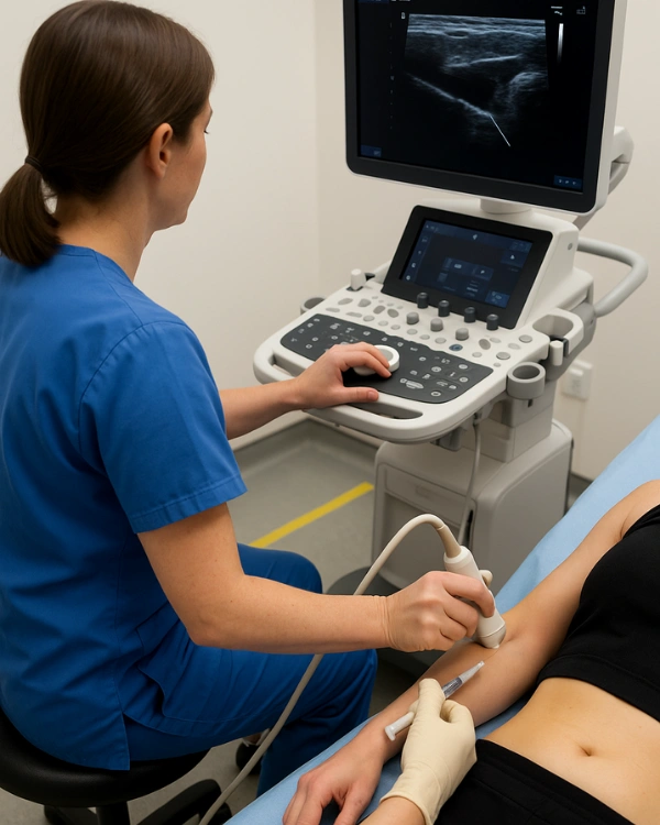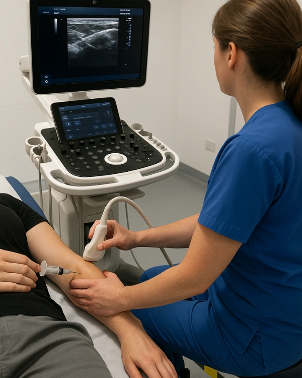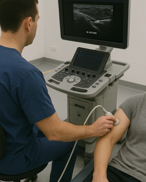 An ultrasound-guided musculoskeletal injection is a precise, image-assisted treatment method used to deliver anti-inflammatory, corticosteroid, or pain-relief medication directly into a joint, tendon sheath, bursa, or other musculoskeletal structures. Guided by real-time imaging, the injection is highly accurate and minimally invasive, making it suitable for a wide range of joint or soft tissue conditions.