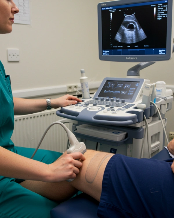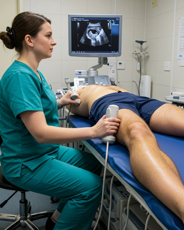 An ultrasound of the hip is a safe, fast, and non-invasive scan used to evaluate soft tissues, bursae, tendons, and joint fluid around the hip. It is especially effective in diagnosing bursitis, tendon inflammation, and joint effusion — particularly in patients presenting with pain, swelling, or restricted movement.