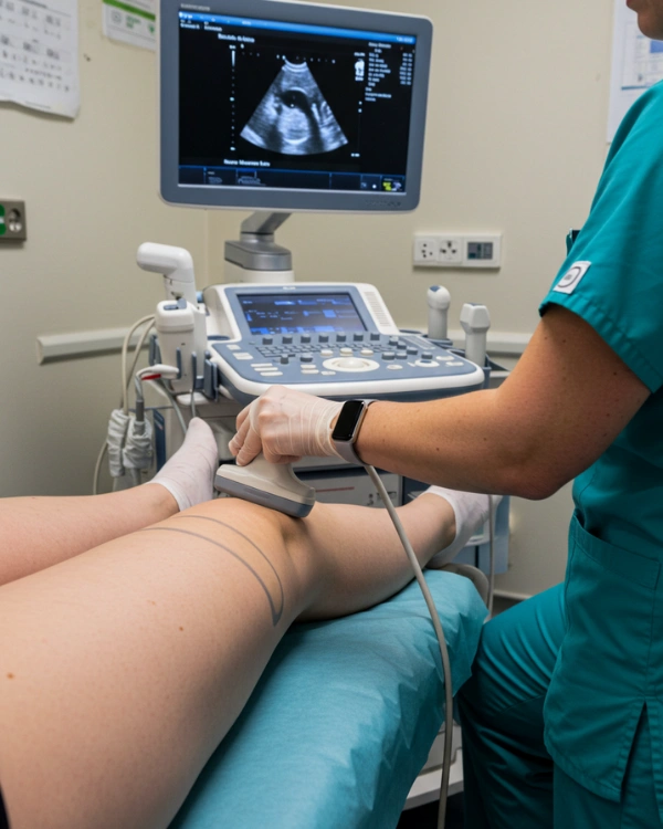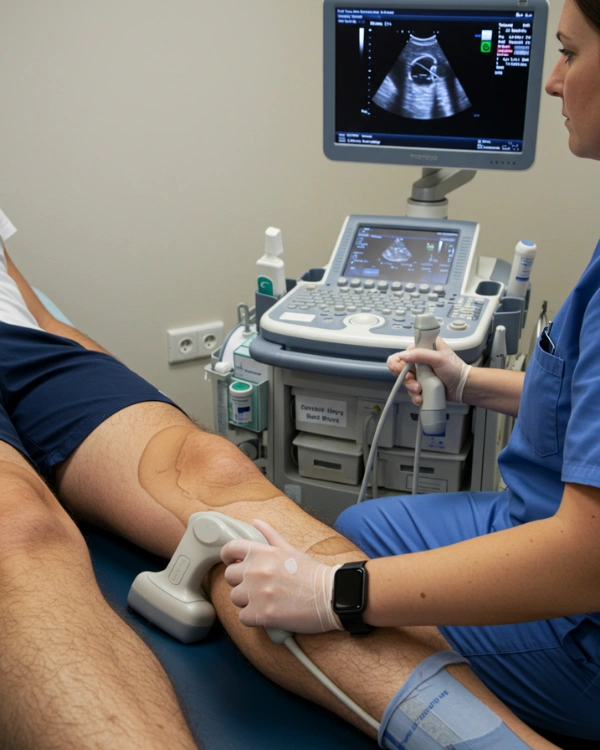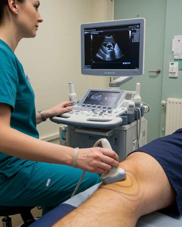 A knee ultrasound is a quick, non-invasive scan that uses high-frequency sound waves to examine the tendons, ligaments, joint spaces, soft tissues, and fluid-filled structures of the knee. It is particularly effective in detecting inflammation, injuries, cysts, or arthritis-related changes.