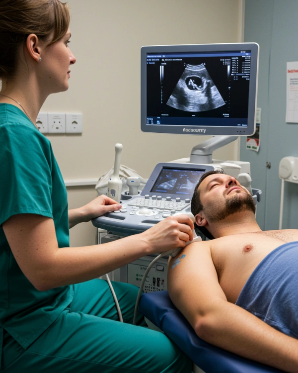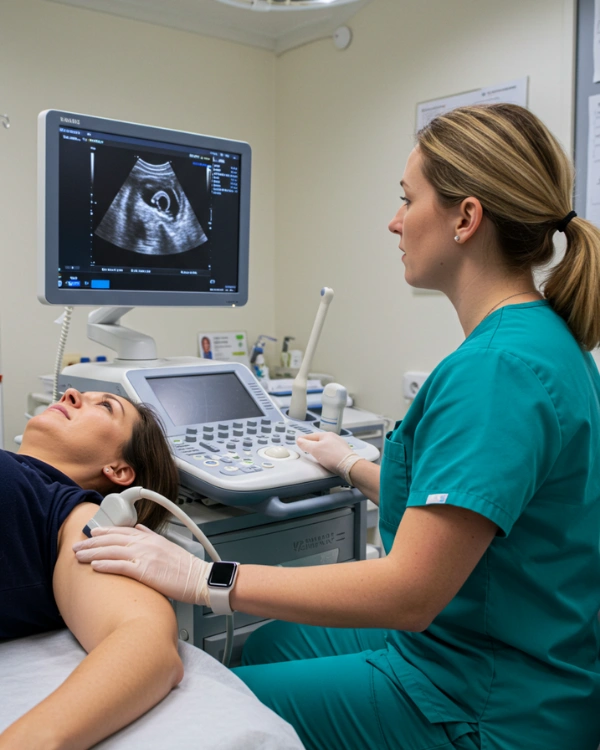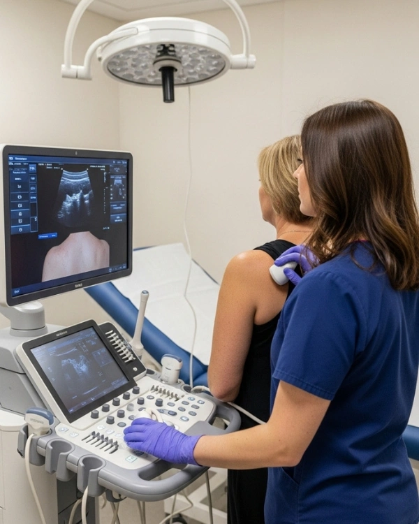 A shoulder ultrasound is one of the most effective ways to diagnose rotator cuff injuries, tendonitis, bursitis, and shoulder impingement. It provides real-time, dynamic imaging of the muscles, tendons, and bursae in your shoulder — ideal for evaluating pain, restricted movement, or clicking.