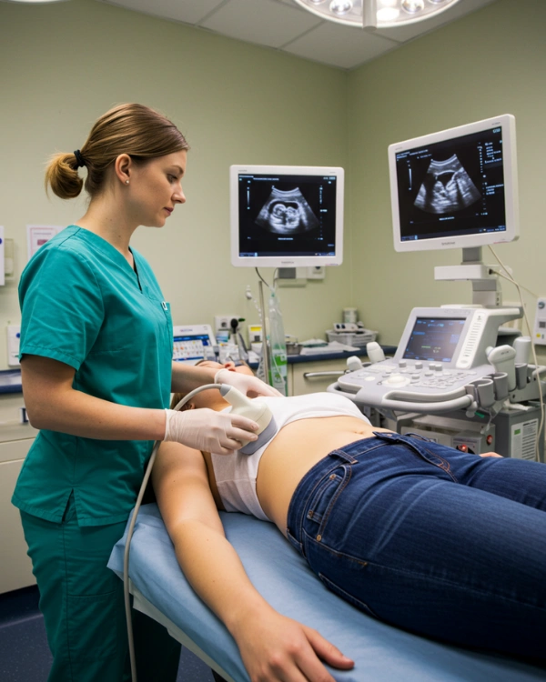 A transabdominal pelvic ultrasound is a non-invasive scan performed through the lower abdomen to examine the uterus, ovaries, endometrium, and surrounding pelvic structures. It is a key diagnostic tool for evaluating menstrual irregularities, pelvic pain, fibroids, ovarian cysts, and fertility-related concerns.